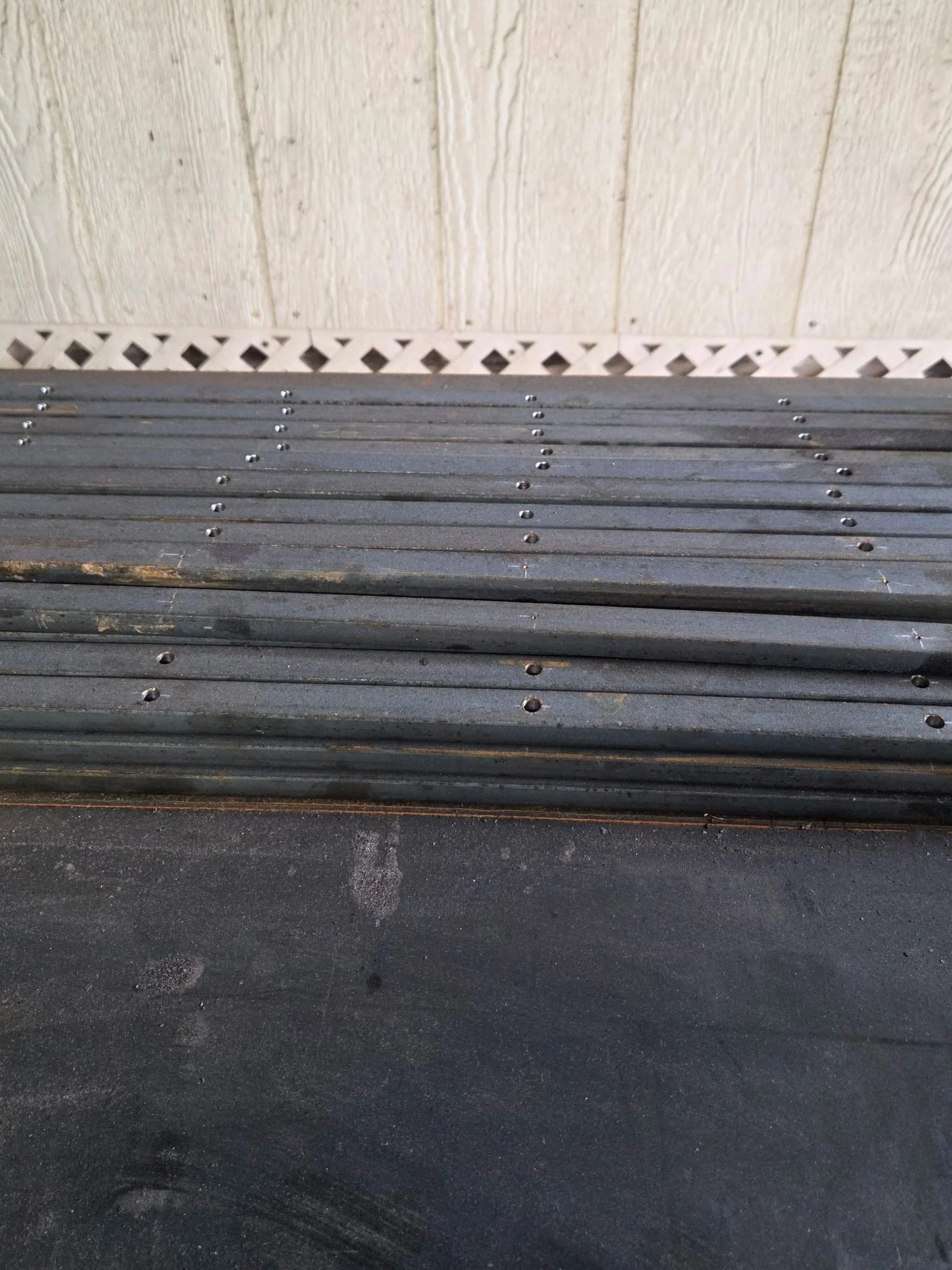 This is the longest part of any fencing job. Lining up all of the holes, making the indents, double checking your measurements, drilling holes, triple checking your measurements, and then drilling more holes, before drilling more holes.