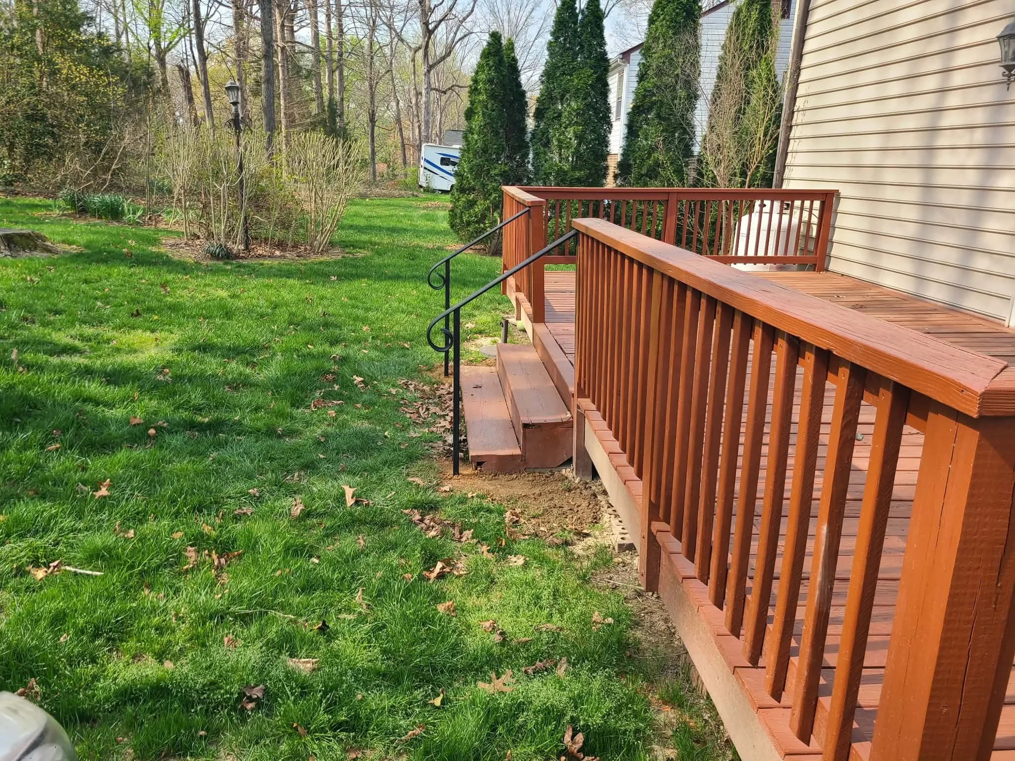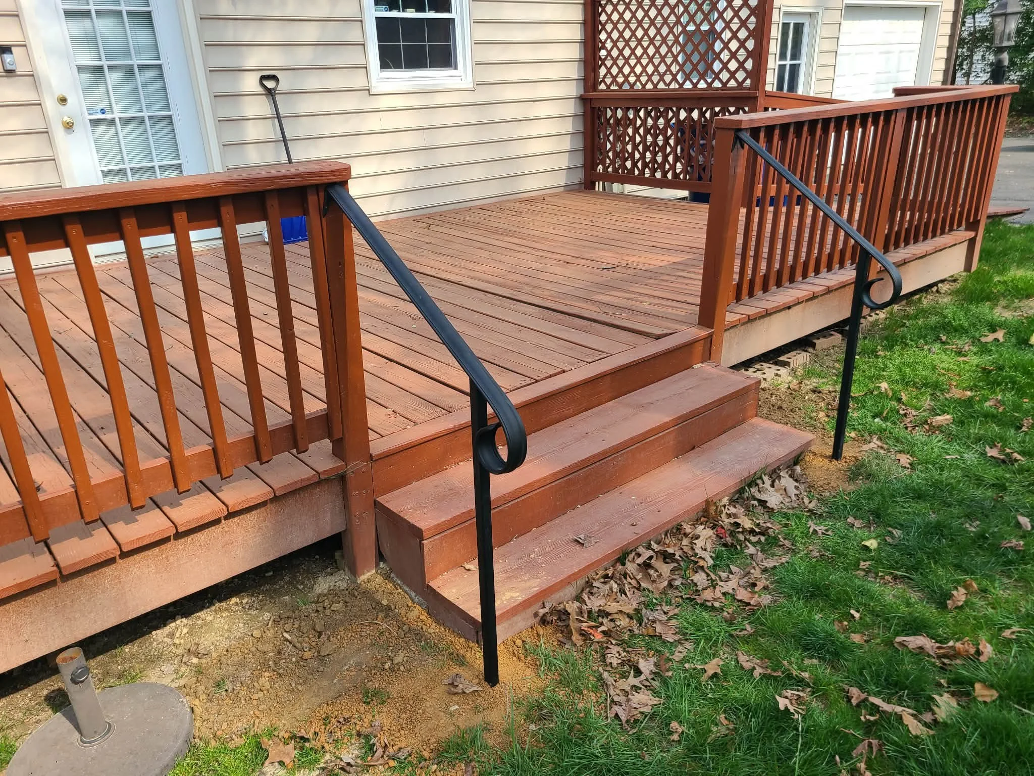 Had a very wonderful customer who is part of the Veterans Association call and ask us for two sets of handrails. One set for the inside garage door and one set for his outside porch. Customer knew exactly what he wanted which made this a quick and smooth sailing job.